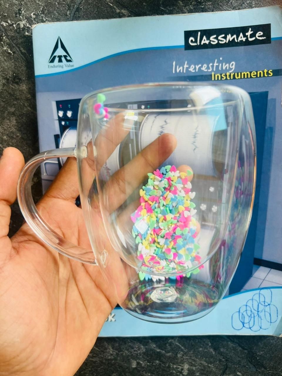 Product Name: Double Walled Glass Mugs, 350ml Double Walled Star Coffee Mug, Insulated Floral Glass Mug with Handles, Aesthetic Tea Cups for Hot and Cold Beverages- 1 Piece
